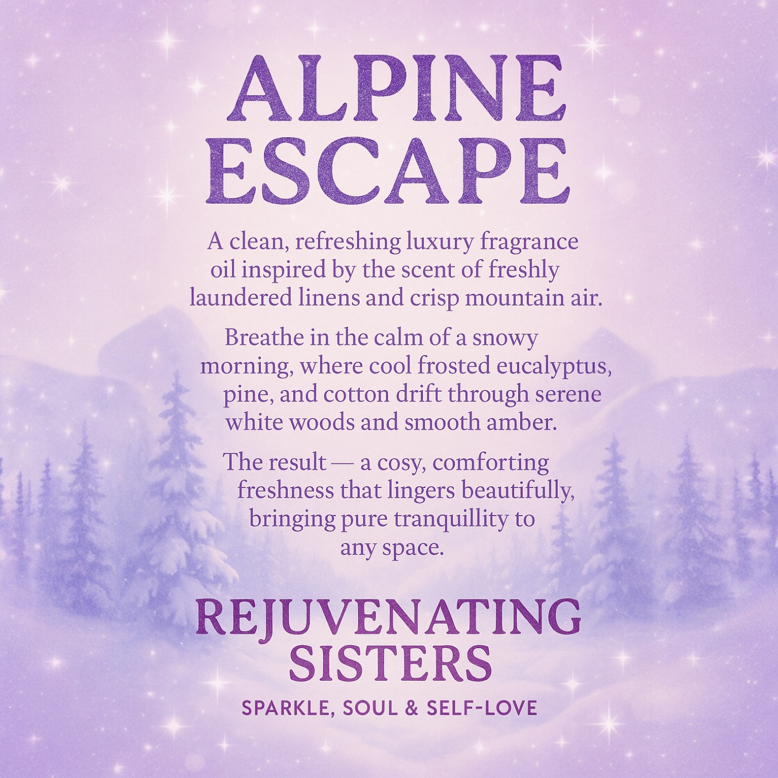 ✨ Alpine Escape ✨A clean, refreshing luxury fragrance oil inspired by the scent of freshly laundered linens and crisp mountain air. ❄️ Breathe in the calm of a snowy morning, where cool frosted eucalyptus, pine, and cotton drift through serene white woods and smooth amber. The result — a cosy, comforting freshness that lingers beautifully, bringing pure tranquillity to any space. 💫