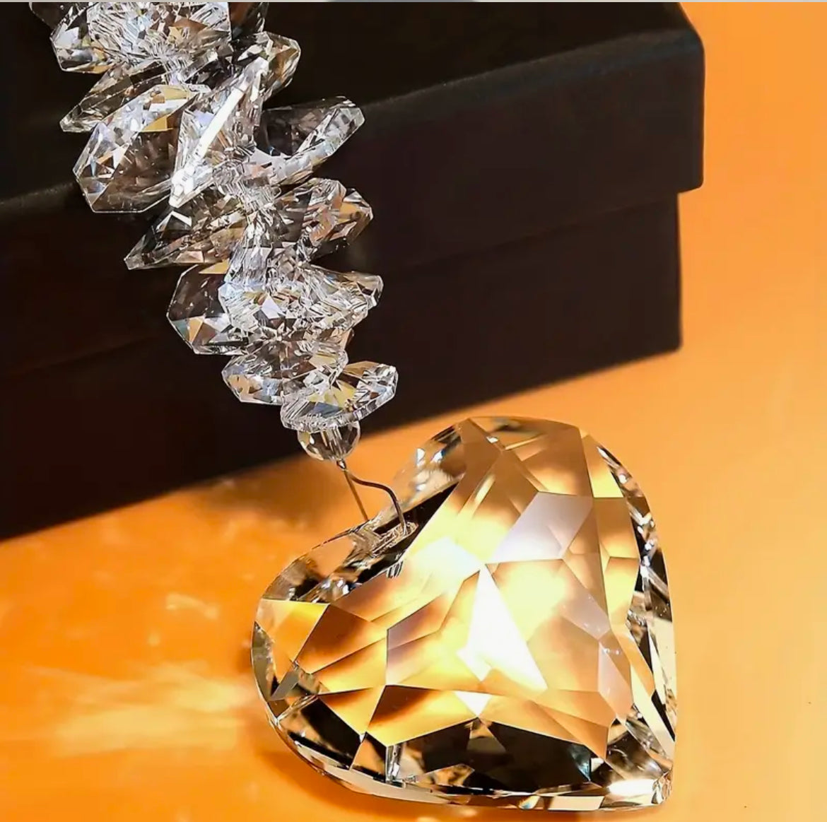 Add some sparkle and love to your home with our SUN CATCHER. This stunning glass heart shaped sun catcher will catch not only the sunlight, but also your heart! Hang it in any window for a touch of beauty and warmth.
